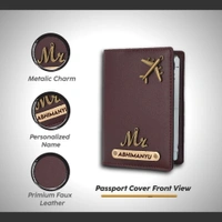 Krafitfy Customised Name & Charm Leather Passport Cover Holder for Men & Women | Personalised Birthday Gifts for Men