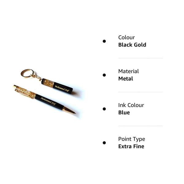 - Package Content: 1 Premium Metal Pen with Name Printed on it for Gifting, 1pc of Customized Metal Keychain (Golden Black)
