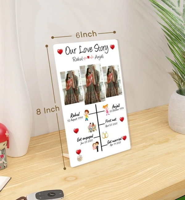 Kraftify Personalised 3 Photos trending Our Love Story Date, Name Photo Frame For Anniversary, Wedding, Valentine day, Love Personalized Collage Gift